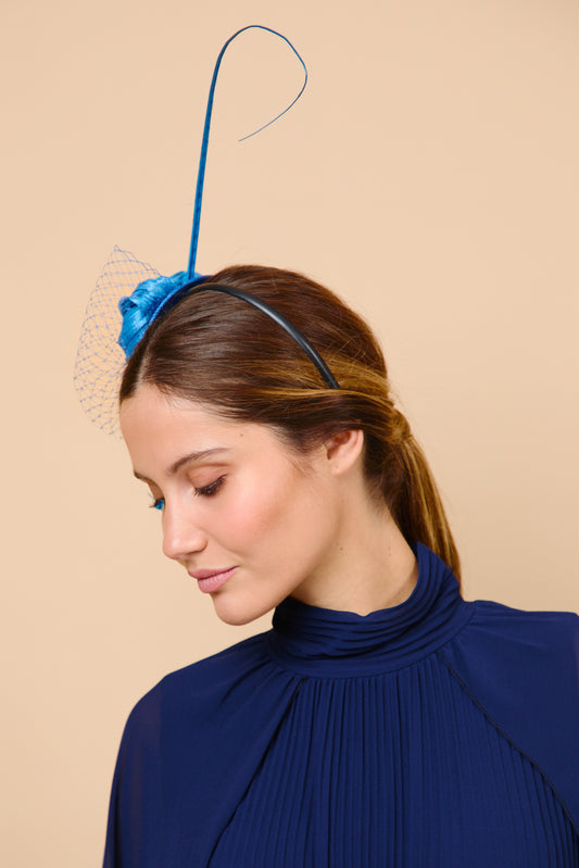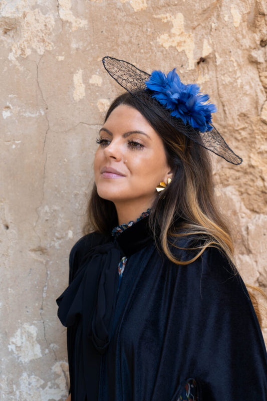 Tocado Fausta marino con flores de plumas