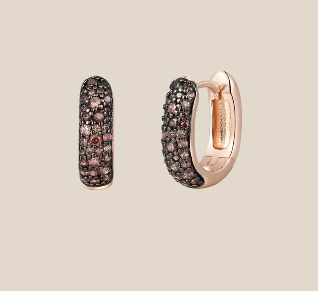 Pendientes de plata bañado en oro con corconitas negras. Miden 14 mm. Se sujetan con varilla