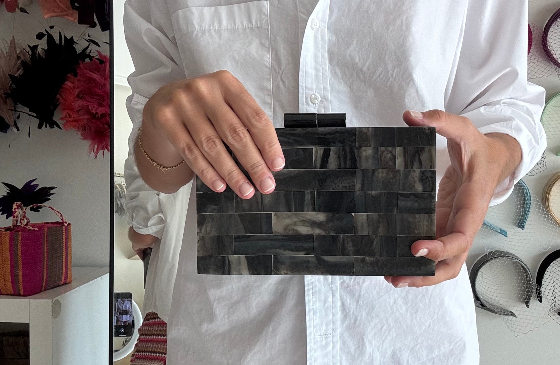 - No es necesario que combine con tocado o zapatos.