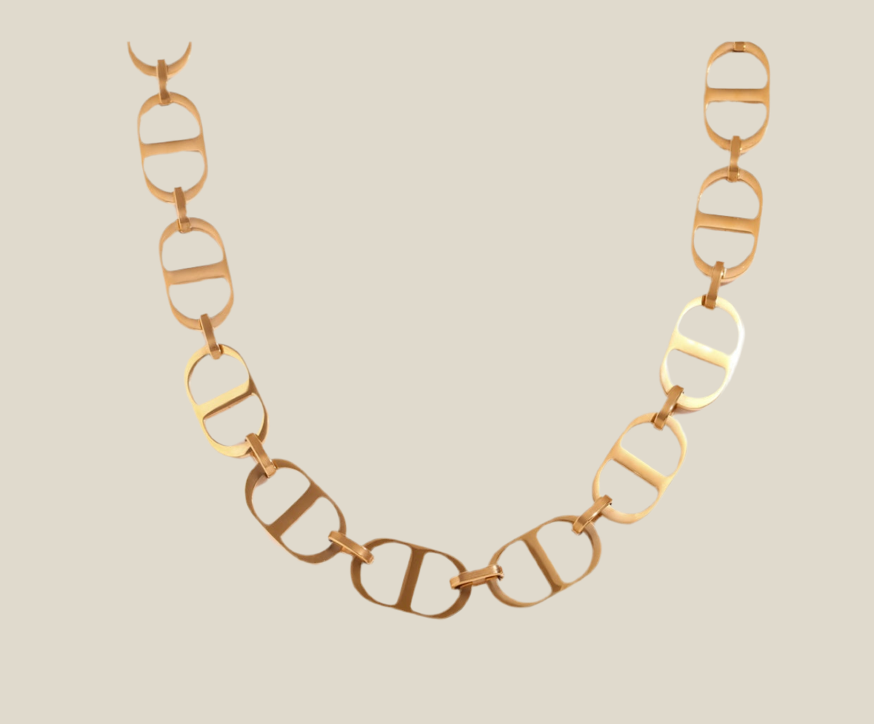 Gargantilla de acero bañado en oro. Se puede colgar a diferentes alturas