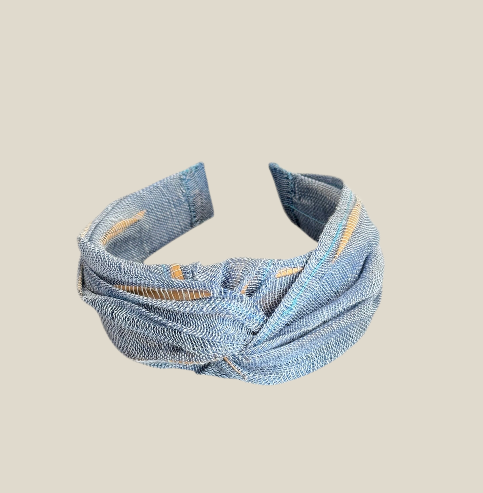 Diadema de sinamay seda de unos 6 cm de ancha. Se puede añadir velo. Hecha a mano en España. Perfecta para invitadas. Tiene entrelazado tejido dorado para hacerla muy especial