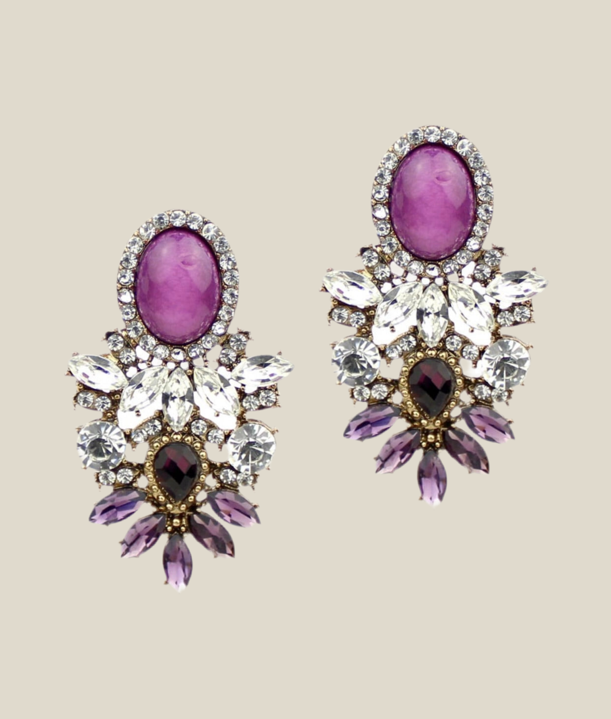 Pendientes largos con cristales de colores. Miden 6 x 3,5 cm