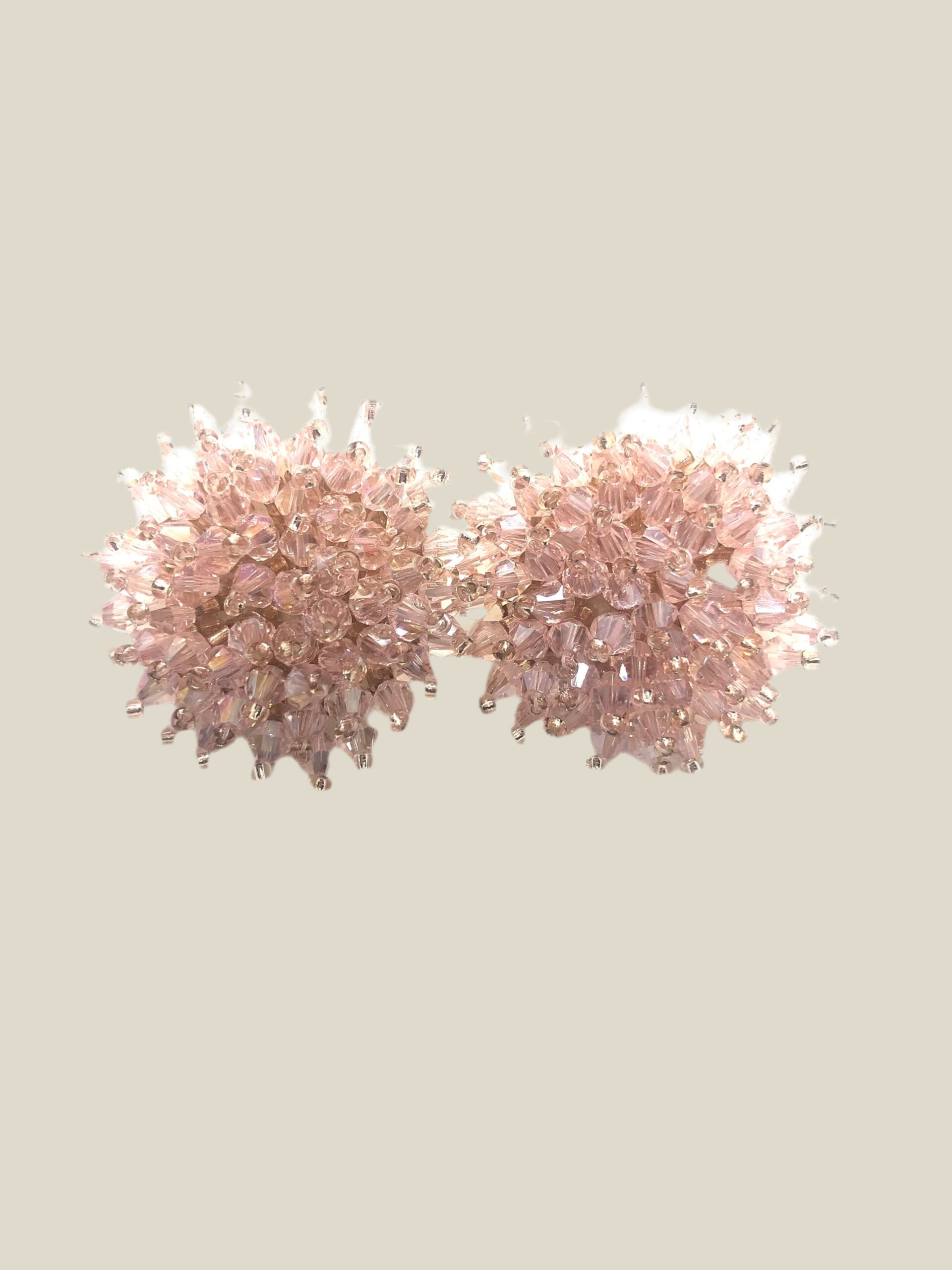 Pendientes de acero con bolitas de colores. Se sujetan con varilla