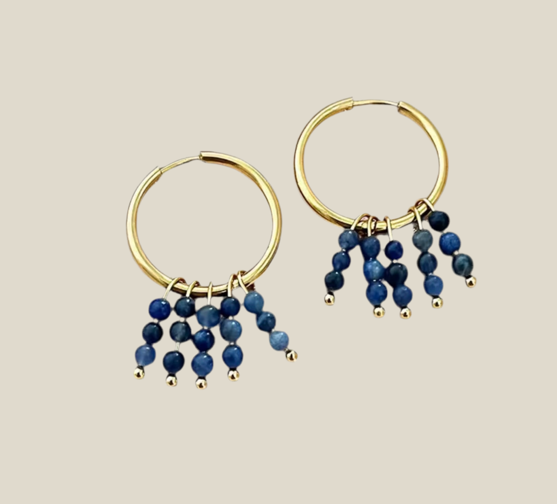 Pendientes de acero bañado en oro con piedras naturales. Miden 30 mm aproximadamente