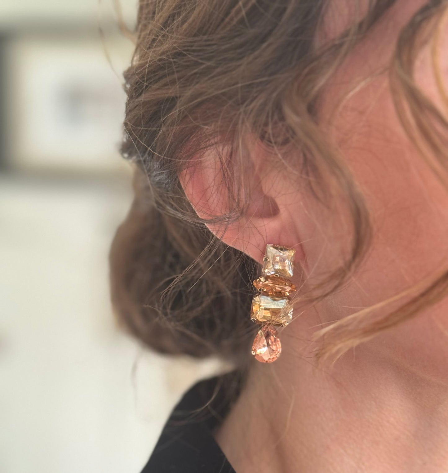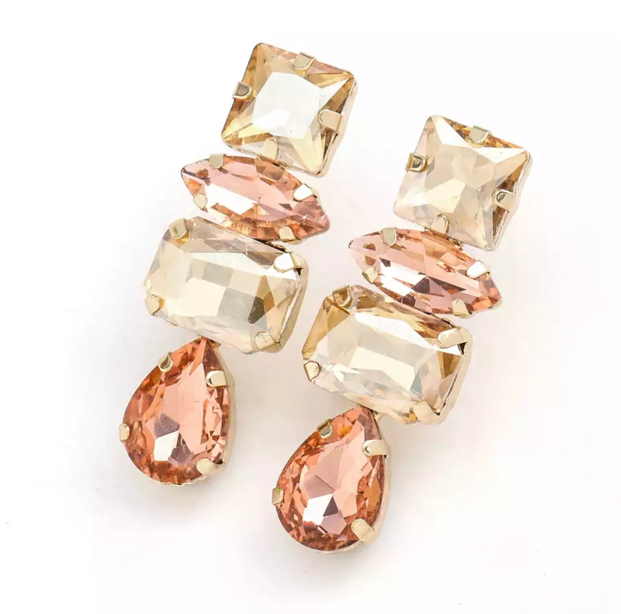 Pendientes largos de cristales de colores. Miden 4 cm de largo