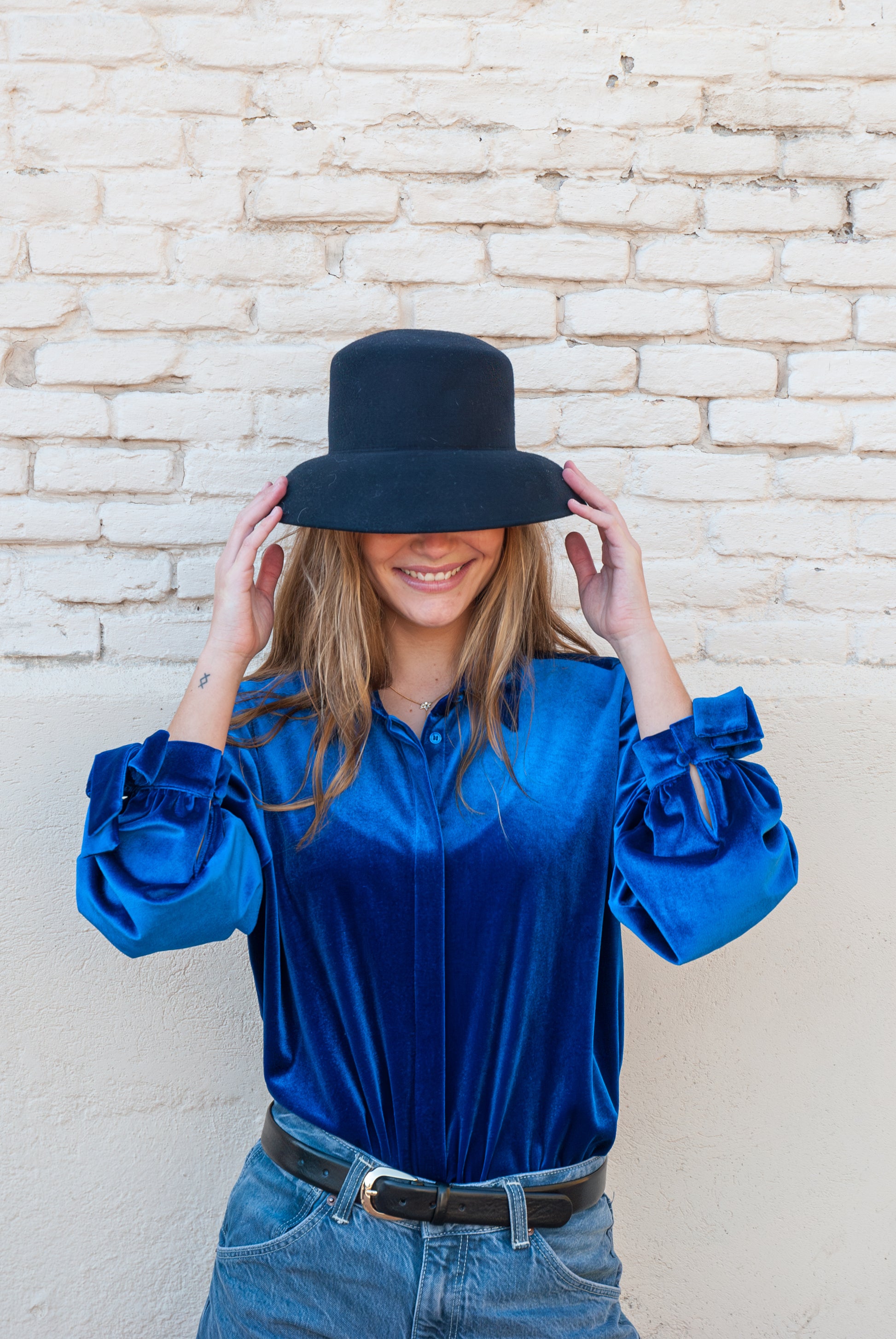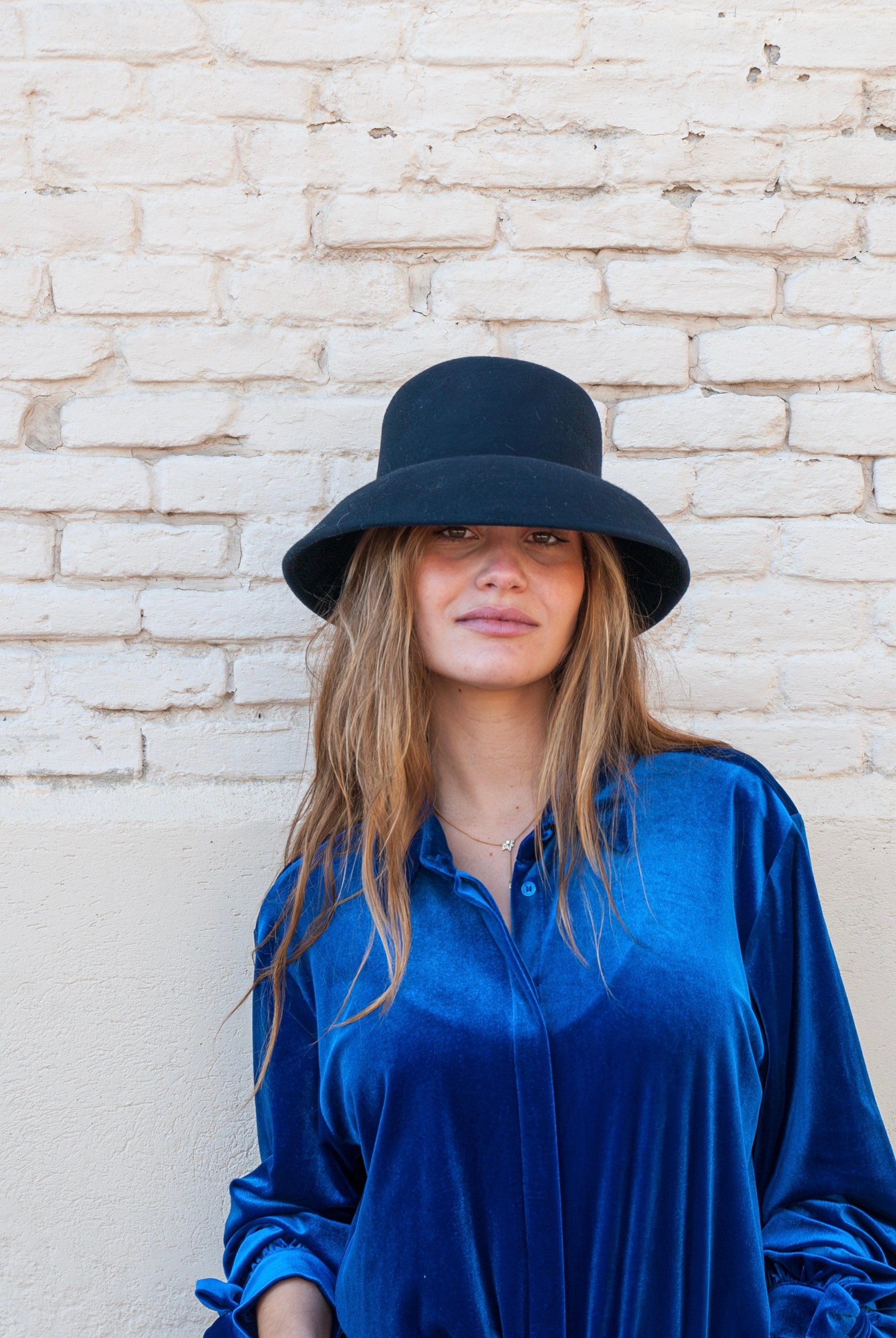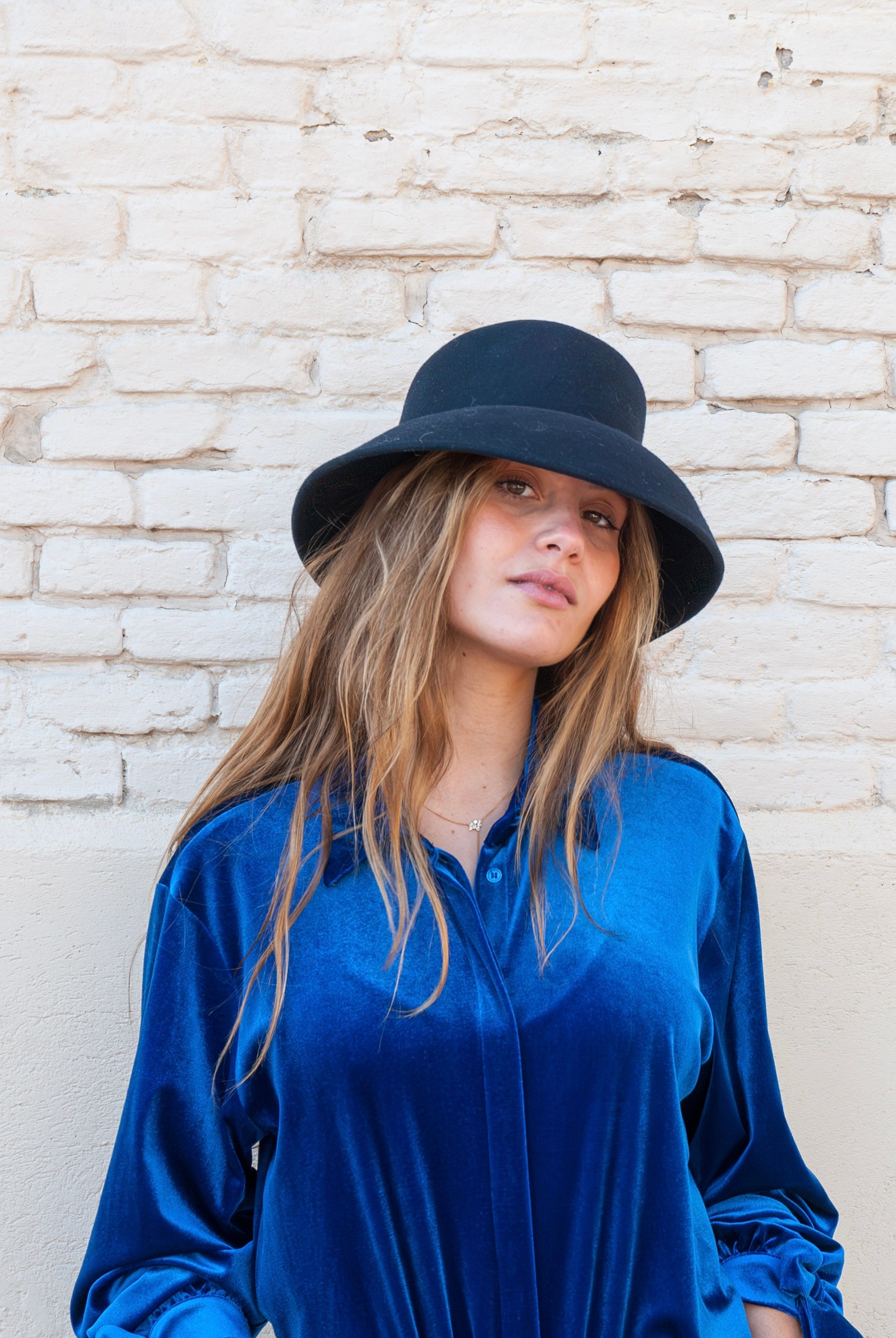Sombrero de fieltro de lana. Hecho a mano en España. Mide 8 cm de alto la copa y entre 28,5 cm y 30 cm de diámetro
